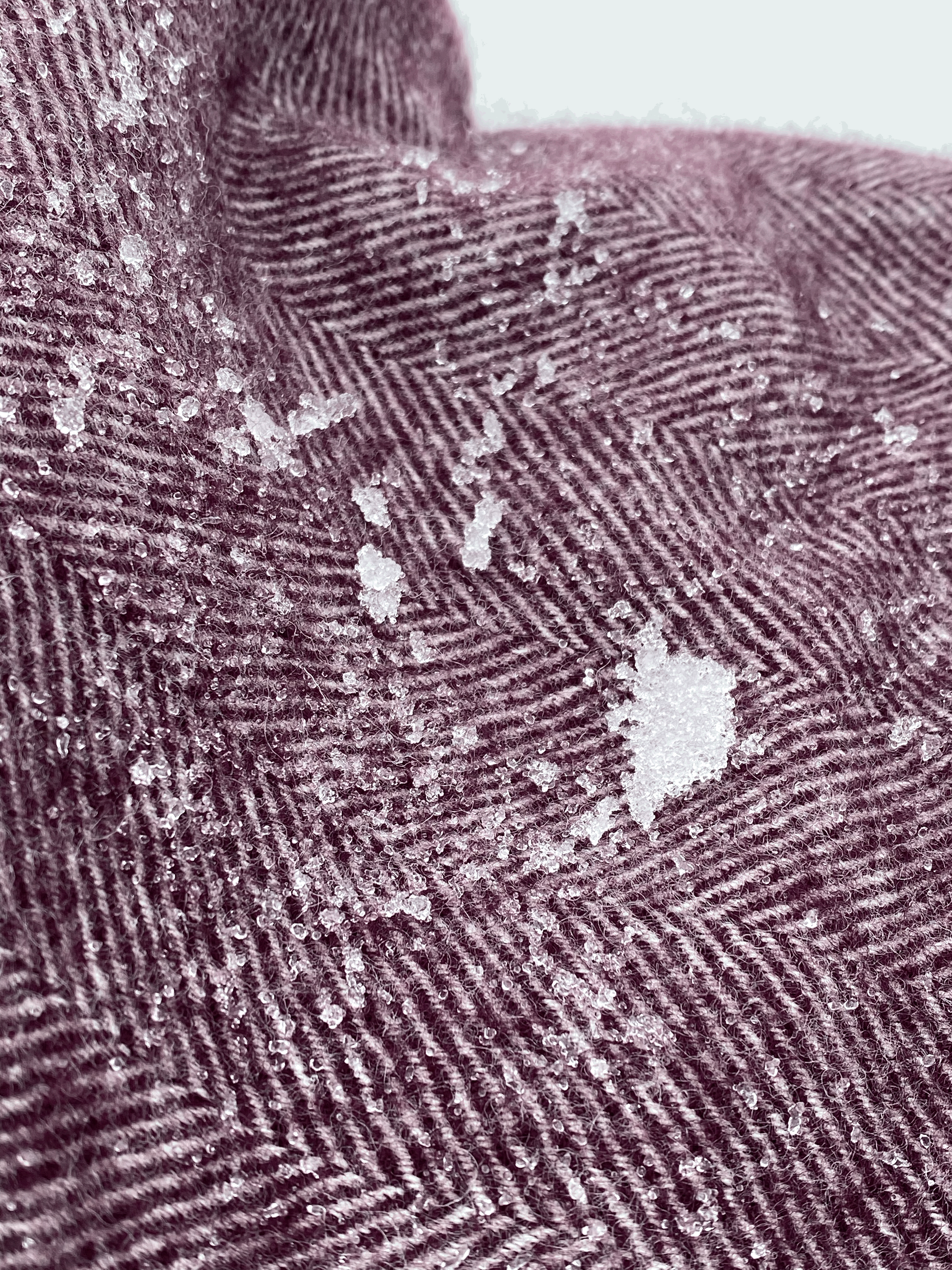 Snow forms around microscopic particles of dirt or dust in the atmosphere. So in theory, it's easy to think you're just rubbing dirt into your wool. We know this isn't the case. Those dust particles are truly microscopic and no different than what's floating around in your household air every day.