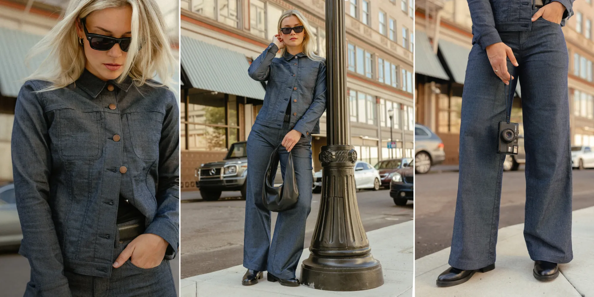 What is wool denim exactly? In the case of the Wool& collection, it's a blend of 59% cotton, 39% wool, and 2% elastane that's been expertly spun and woven into a fabric looks and feels like a lightweight denim.