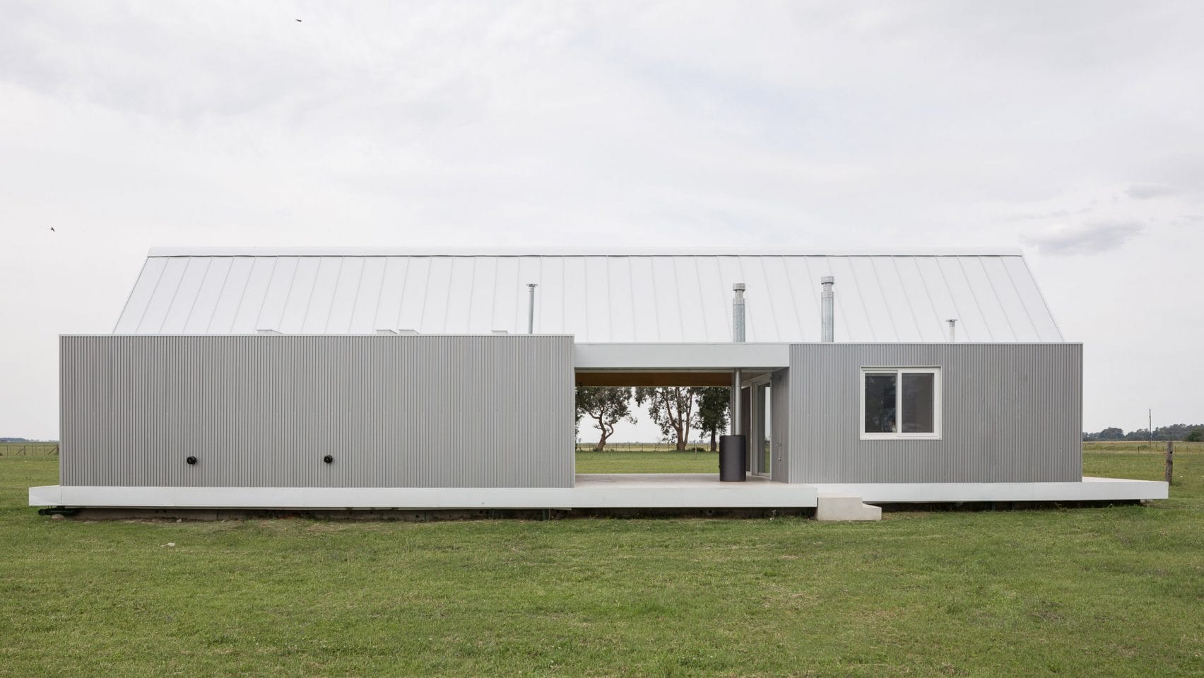 The 150-square-metre project is located on a farm in Argentina's subtropical Pampas region, which consists of agricultural fields that stretch over flat plains. The building site is surrounded by crops, sheep and polo horses.
